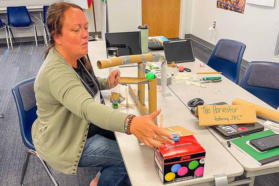Prindle’s impactful work includes the project “From Code to Creatures,” in which students move from coding Ozobots to designing food webs, 3D-printing ecosystem animals and applying algebraic reasoning to their own creations. This project seamlessly blends computer science, life science and mathematics while emphasizing problem-solving, collaboration and creativity. Students not only learn standards but also apply them in meaningful, tangible ways that mirror real-world STEM applications.